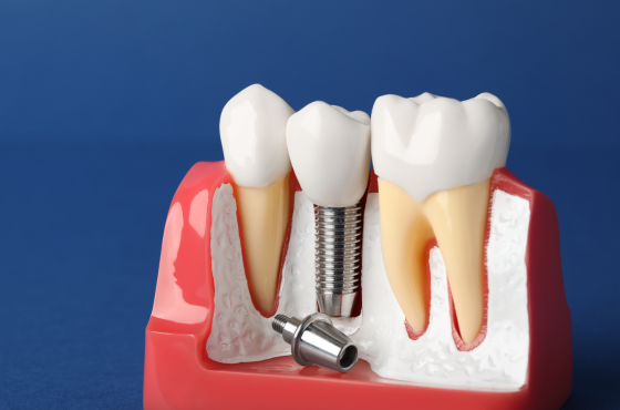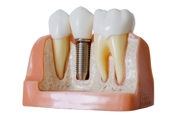 An implant is a titanium “root” which can be placed into the jawbone. Once integrated with your bone, the implant can be used to support